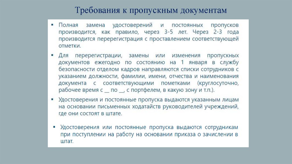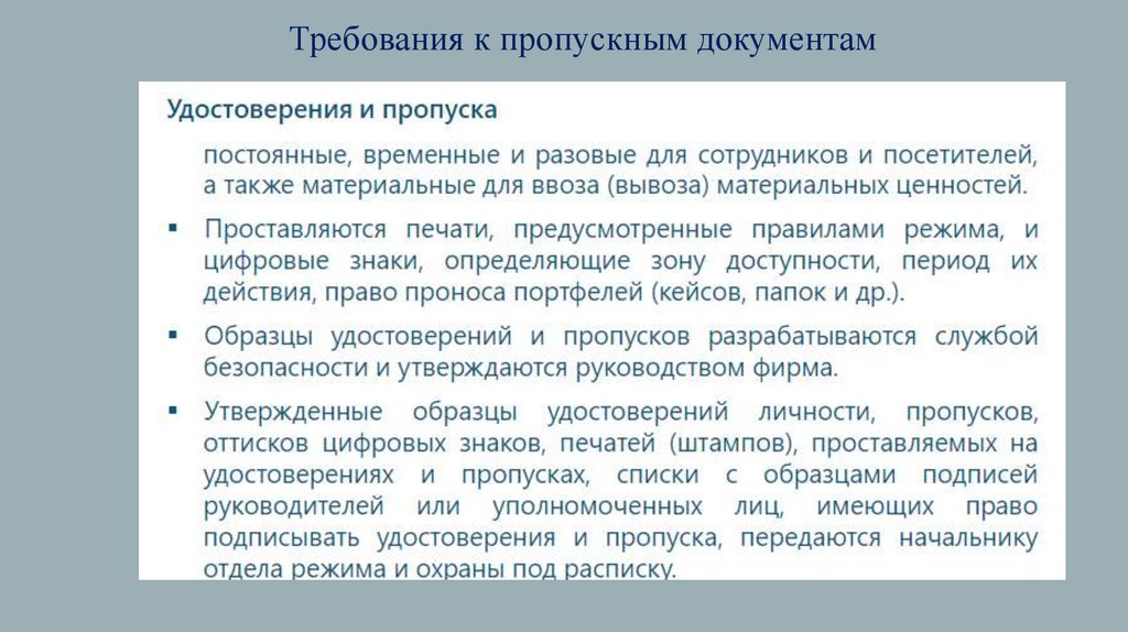 Требования к пропускным документам18.
