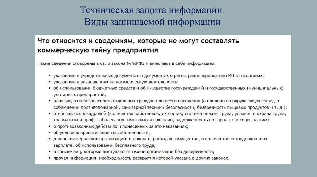 Техническая защита информации.Виды защищаемой информации