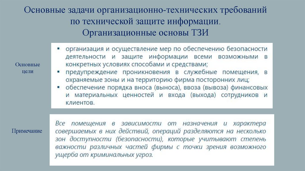 Основные задачи организационно-технических требованийпо технической защите информации.