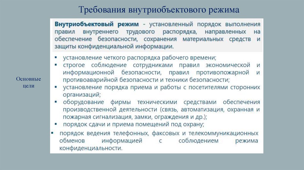 Требования внутриобъектового режимаОсновные