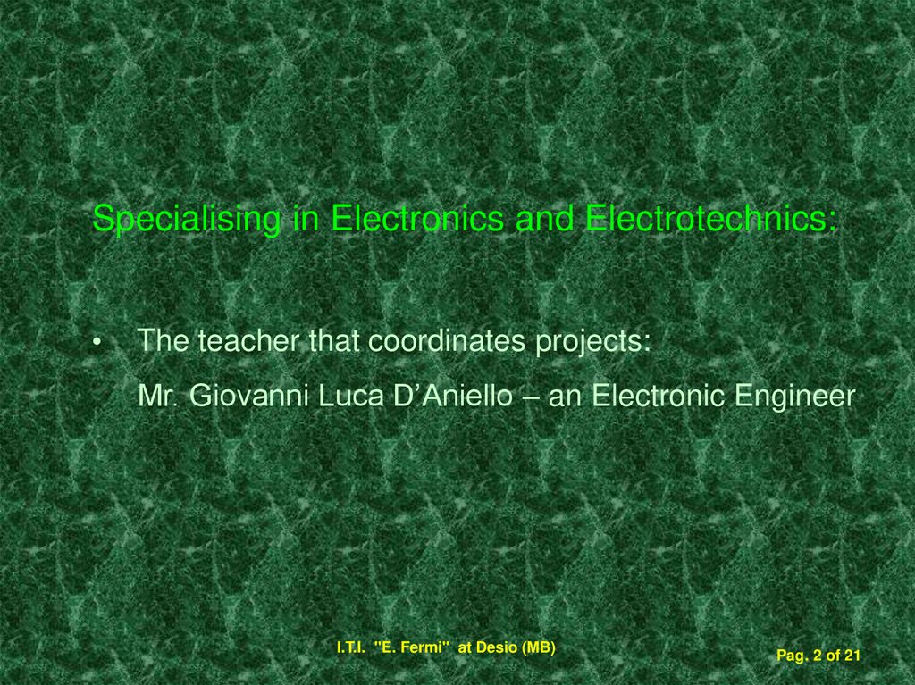 Specialising in Electronics and Electrotechnics:The teacher that coordinates projects: