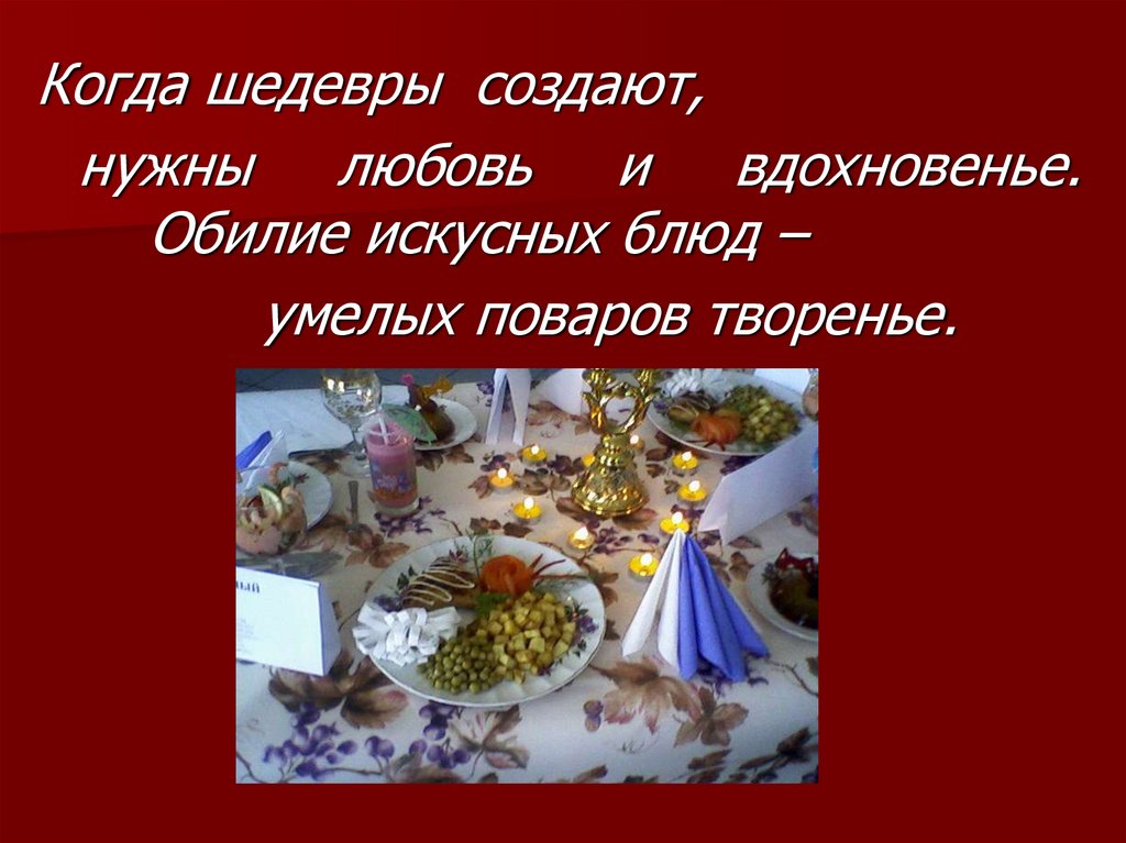 Обилие искусных блюд –
