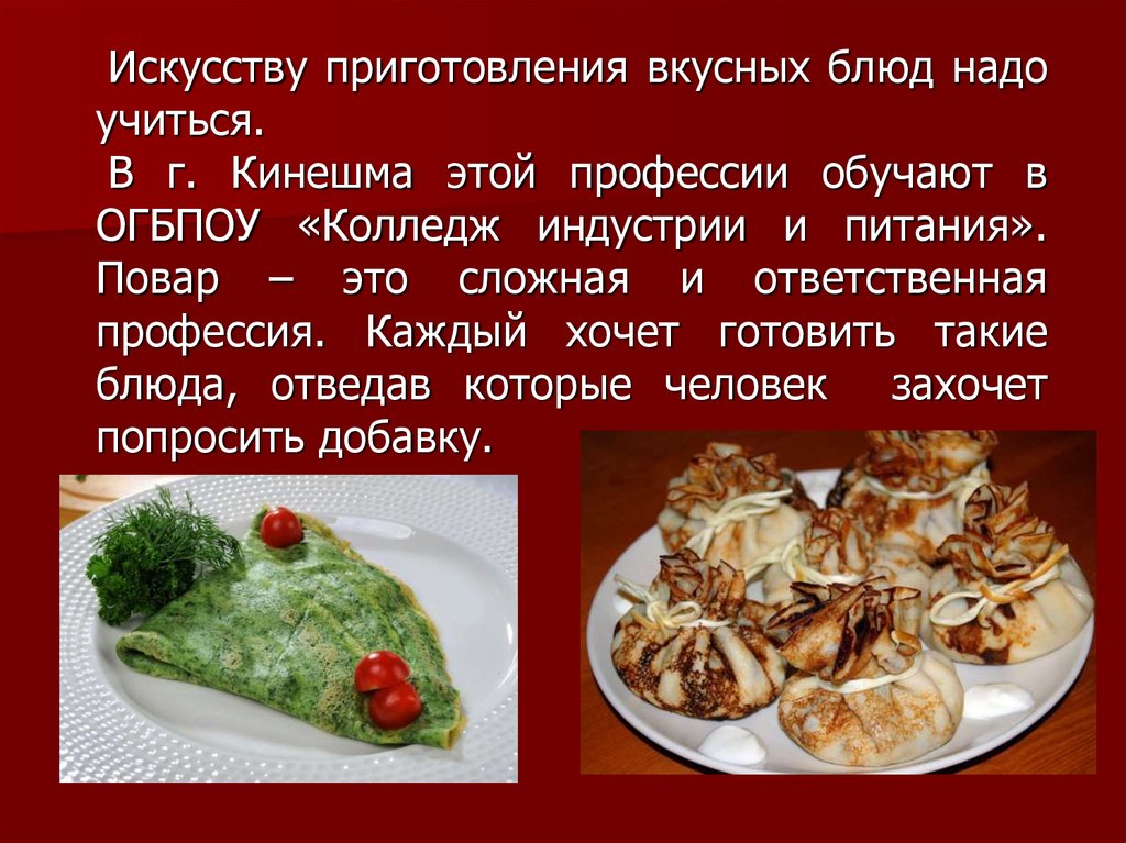Искусству приготовления вкусных блюд надоучиться.