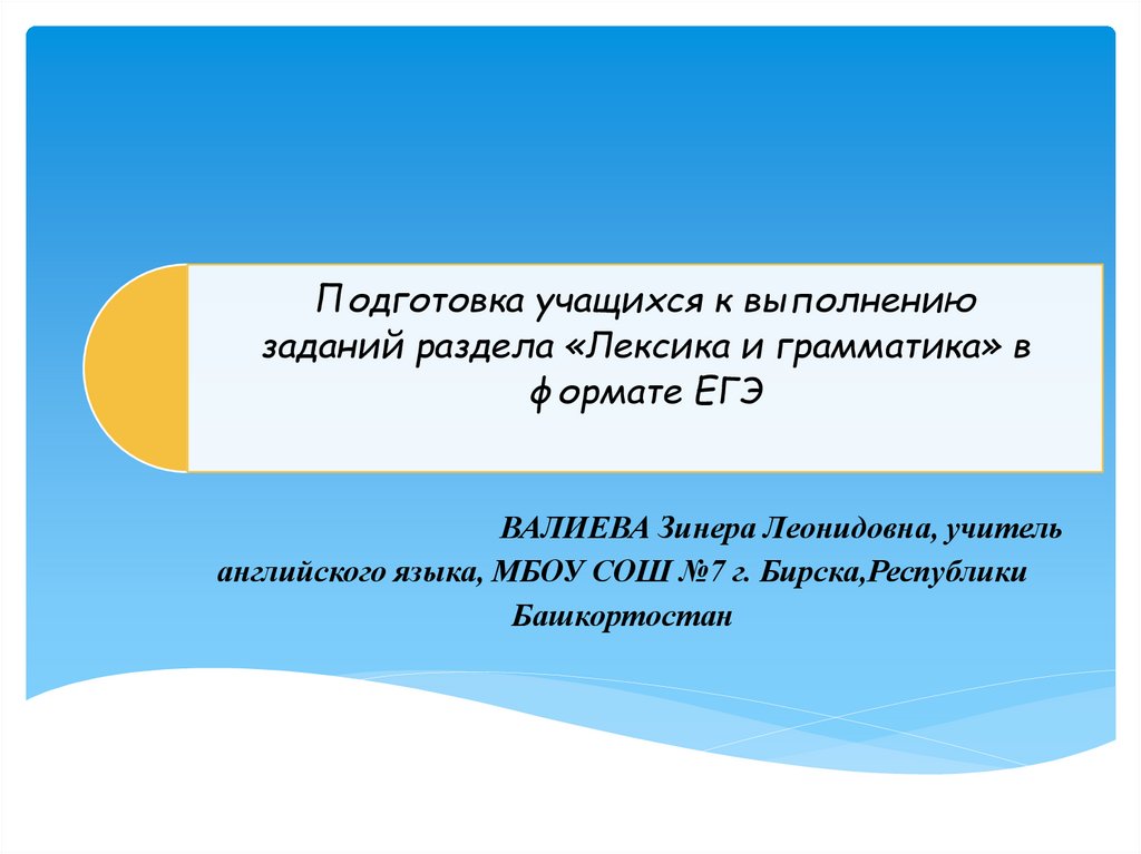 Подготовка учащихся к выполнениюзаданий раздела «Лексика и грамматика» в