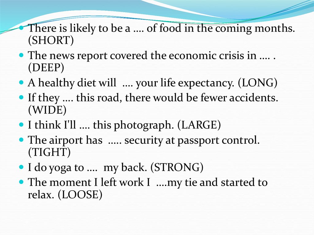 There is likely to be a SHORTAGE of food in thecoming months. (SHORT)