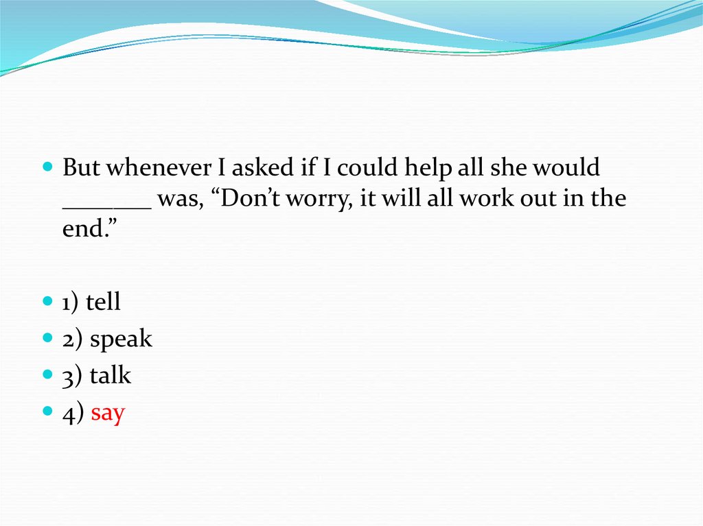 But whenever I asked if I could help all she would_______ was, “Don’t worry, it will all work out in the