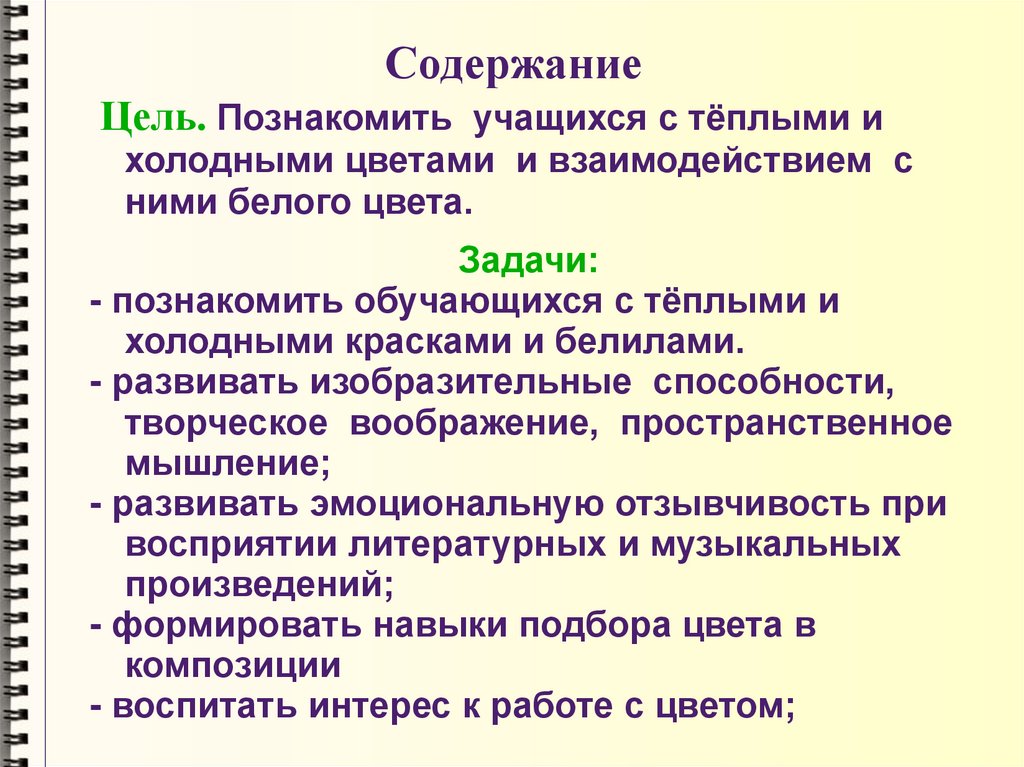 СодержаниеЦель. Познакомить учащихся с тёплыми и