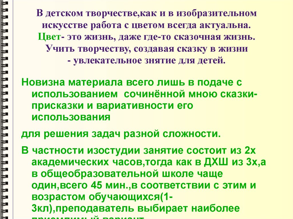 В детском творчестве,как и в изобразительномискусстве работа с цветом всегда актуальна.
