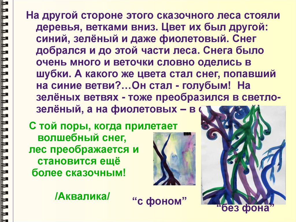 На другой стороне этого сказочного леса стоялидеревья, ветками вниз. Цвет их был другой: