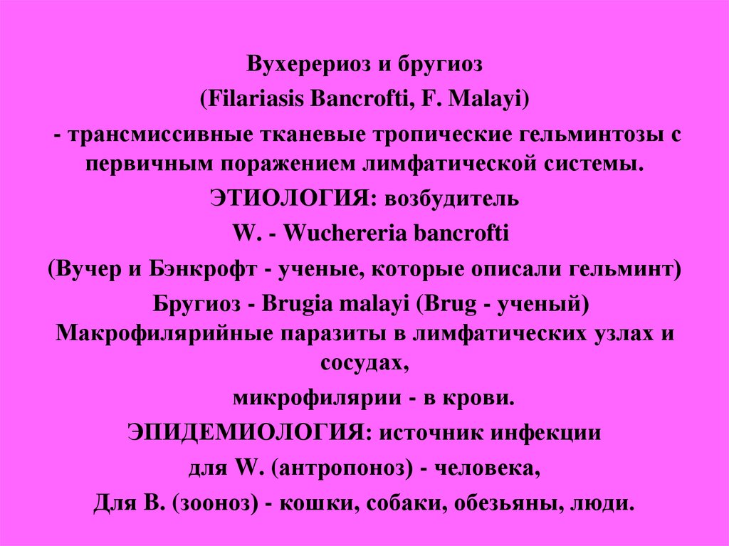 (Вучер и Бэнкрофт - ученые, которые описали гельминт)