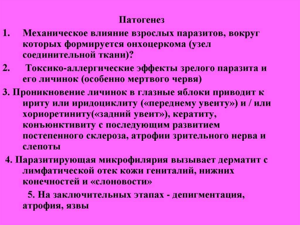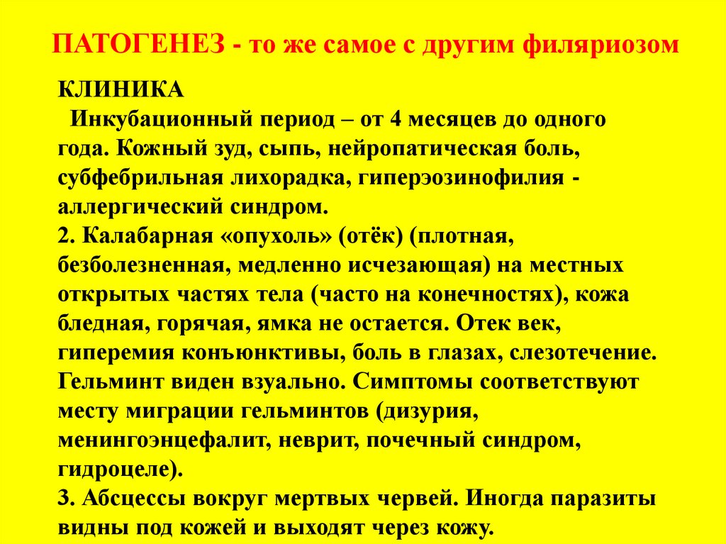 ПАТОГЕНЕЗ - то же самое с другим филяриозомКЛИНИКА