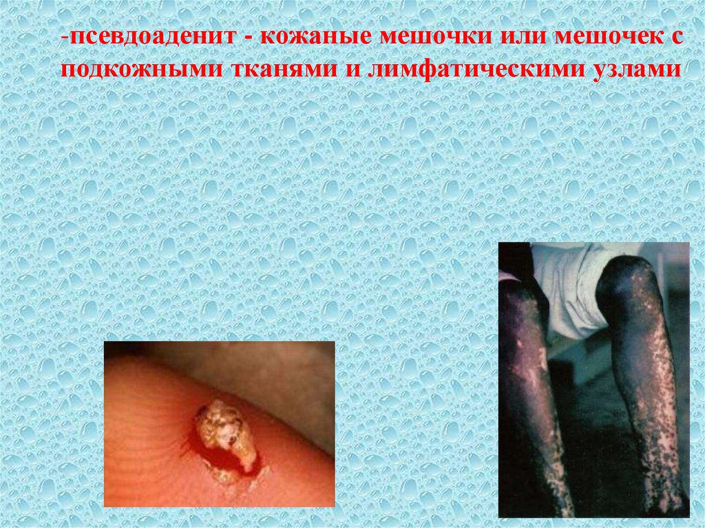 -псевдоаденит - кожаные мешочки или мешочек сподкожными тканями и лимфатическими узлами