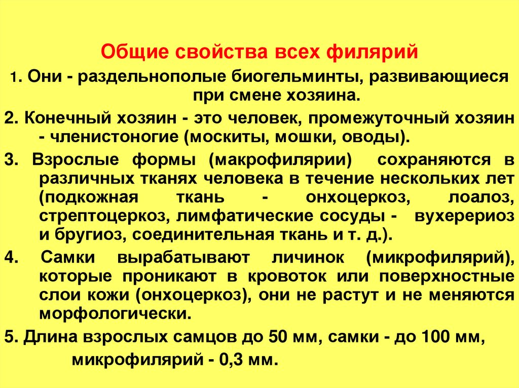 Общие свойства всех филярий1. Они - раздельнополые биогельминты, развивающиеся