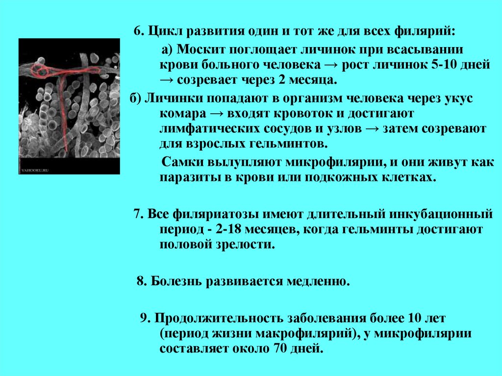 6. Цикл развития один и тот же для всех филярий:a) Москит поглощает личинок при всасывании