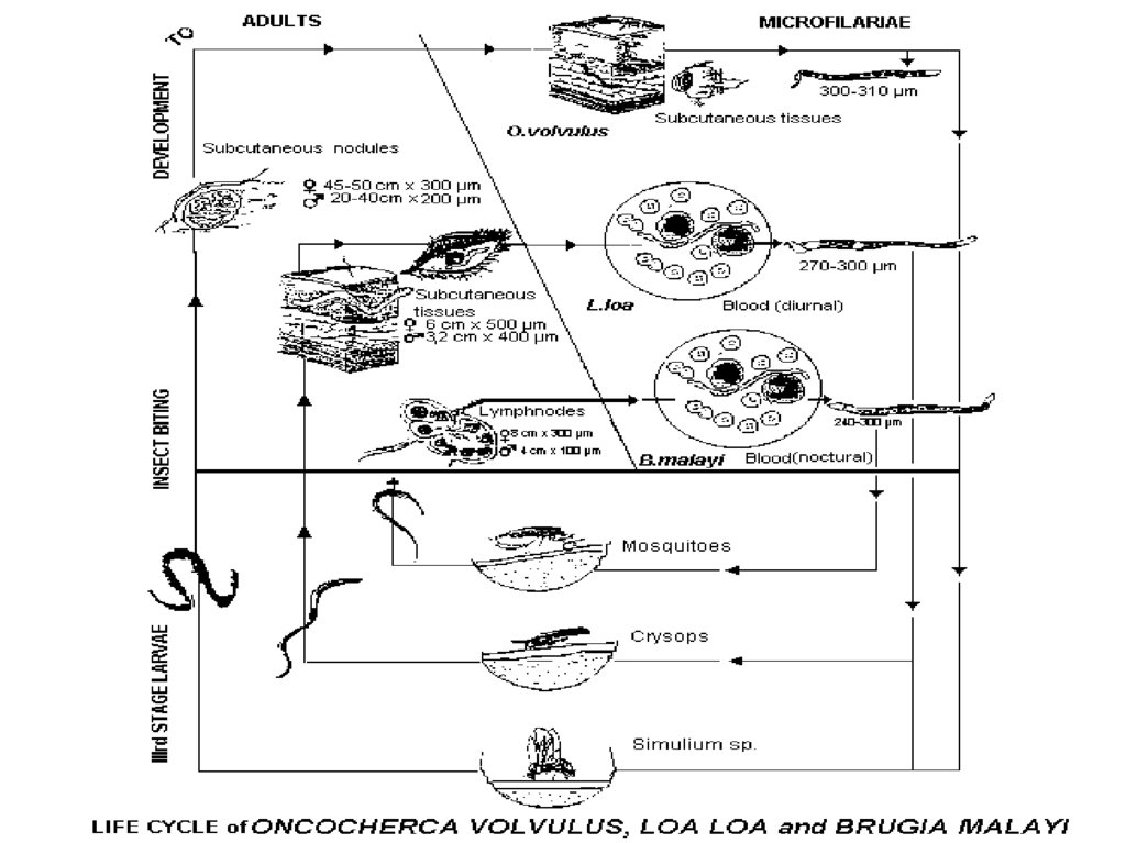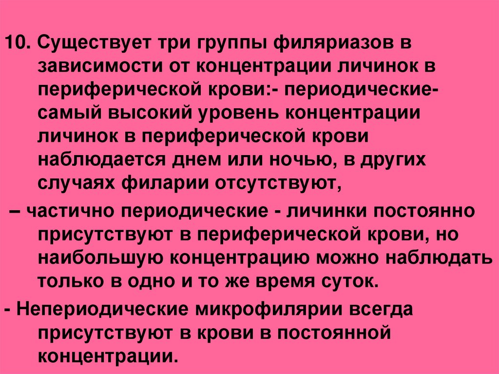 10. Существует три группы филяриазов взависимости от концентрации личинок в