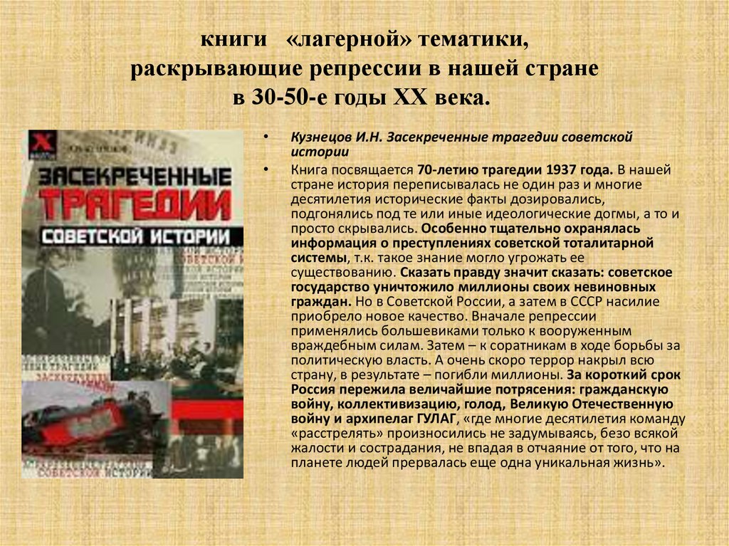 6. книги «лагерной» тематики, раскрывающие репрессии в нашей стране в 30-50-е годы ХХ века.