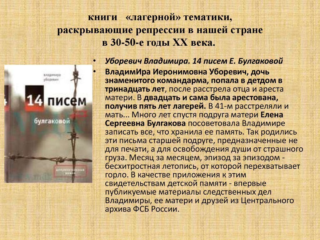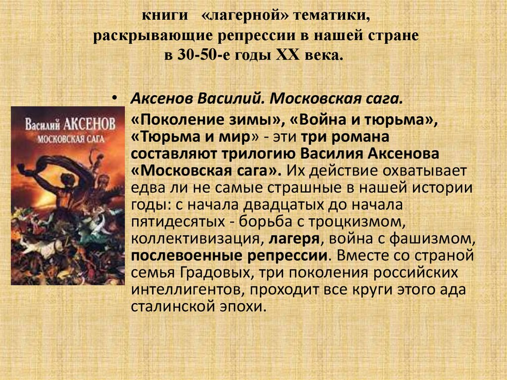 3. книги «лагерной» тематики, раскрывающие репрессии в нашей стране в 30-50-е годы ХХ века.