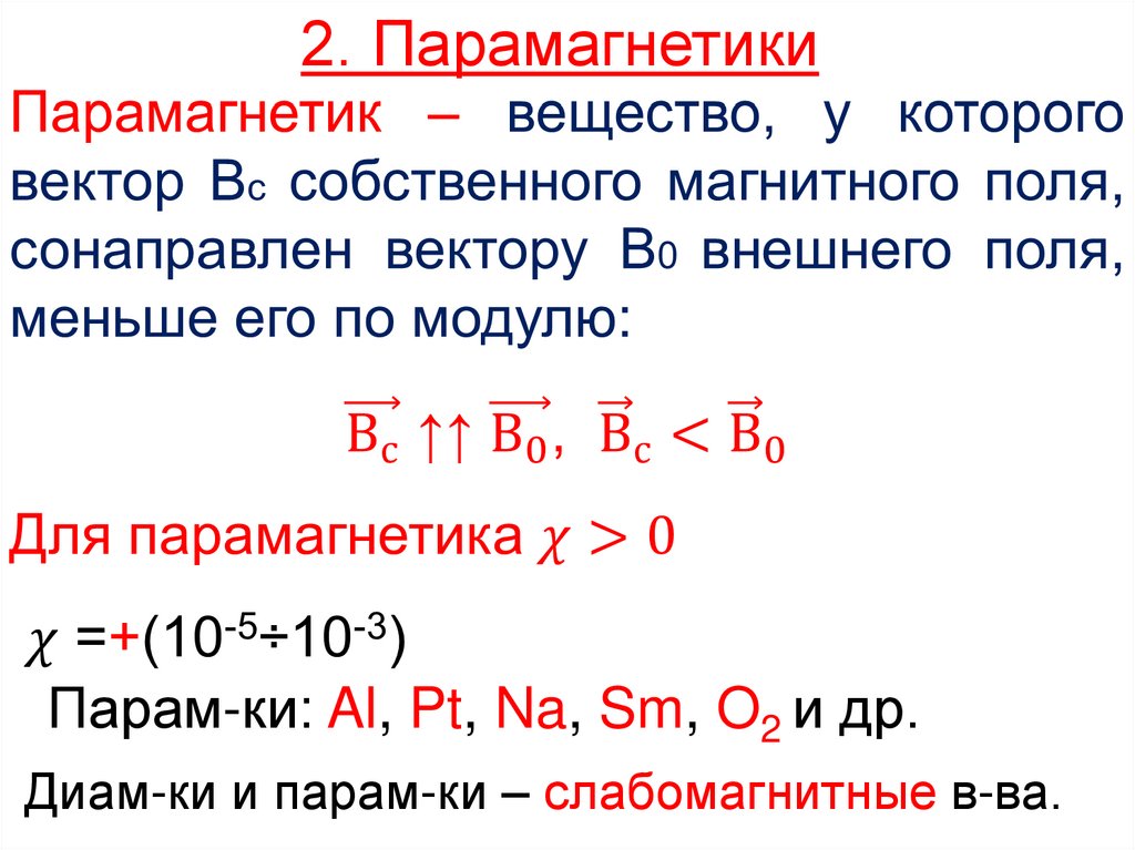 2. ПарамагнетикиПарам-ки: Al, Pt, Na, Sm, O2 и др.
