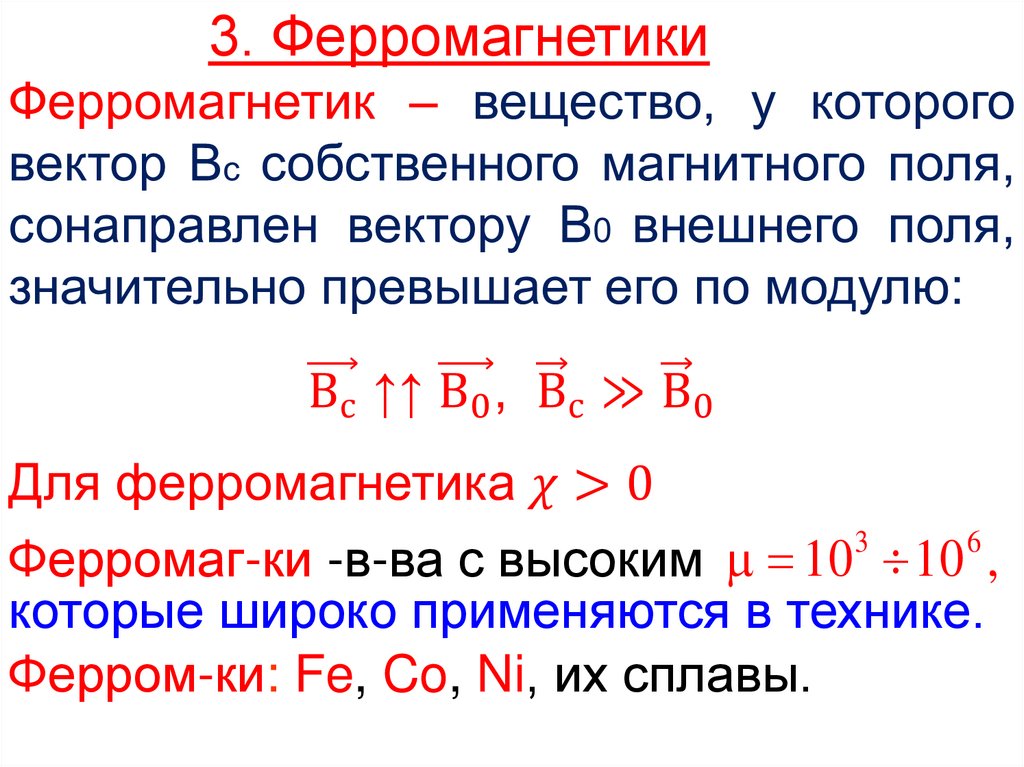 Ферром-ки: Fe, Co, Ni, их сплавы.