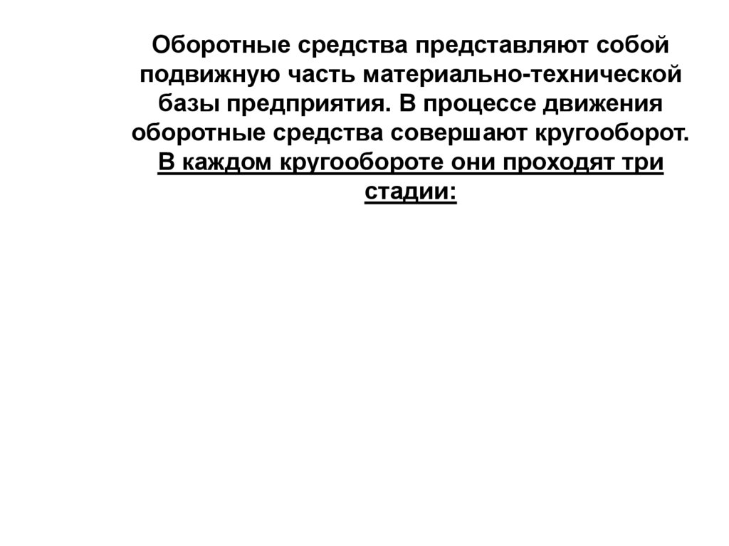 Оборотные средства представляют собойподвижную часть материально-технической