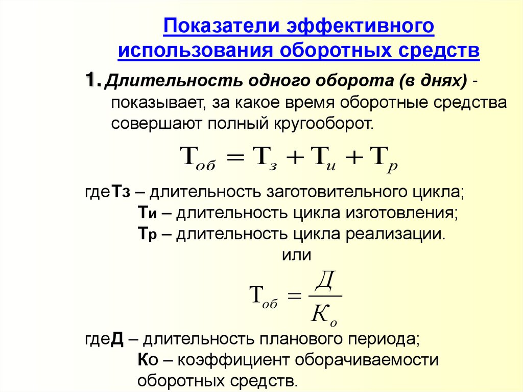 1. Длительность одного оборота (в днях) показывает, за какое время оборотные средства