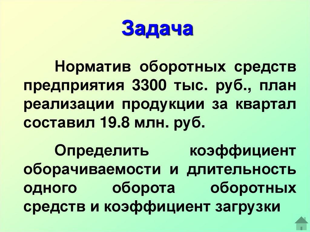 ЗадачаНорматив оборотных средств