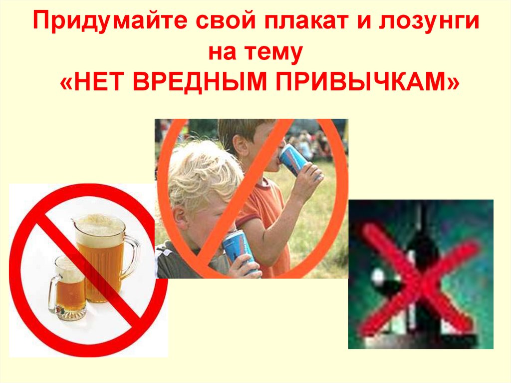 16. Придумайте свой плакат и лозунги на тему «НЕТ ВРЕДНЫМ ПРИВЫЧКАМ»