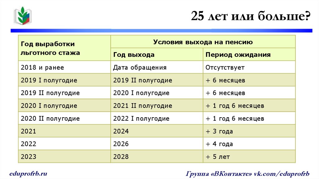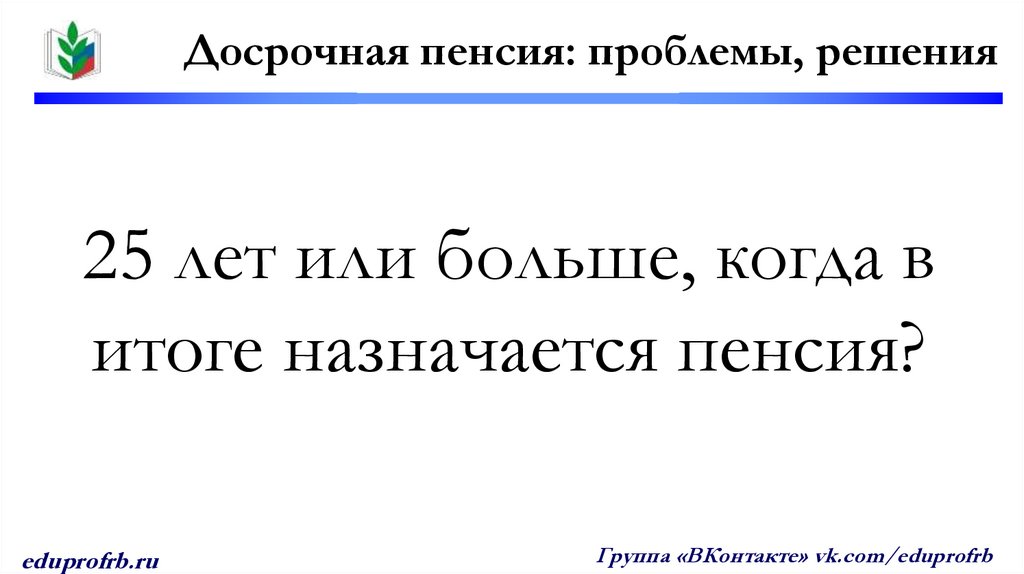 Досрочная пенсия: проблемы, решения25 лет или больше, когда в