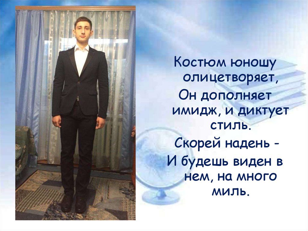 Костюм юношуолицетворяет,