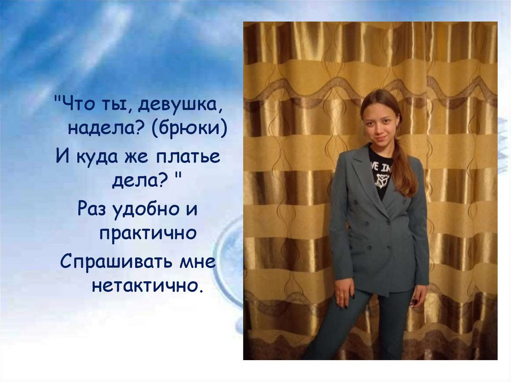 "Что ты, девушка,надела? (брюки)