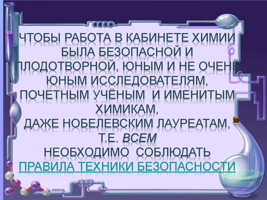 ЧТОБЫ РАБОТА В КАБИНЕТЕ ХИМИИБЫЛА БЕЗОПАСНОЙ И