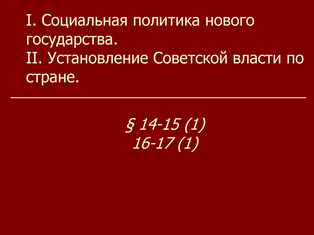I. Социальная политика новогогосударства.