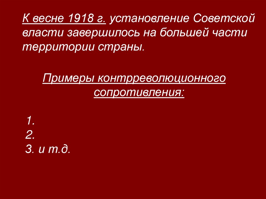 К весне 1918 г. установление Советскойвласти завершилось на большей части