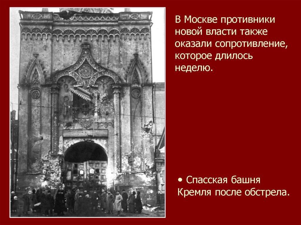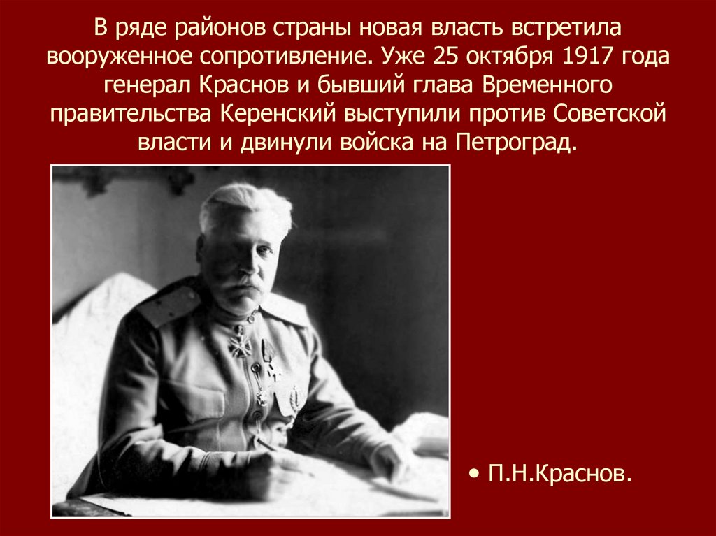В ряде районов страны новая власть встретилавооруженное сопротивление. Уже 25 октября 1917 года