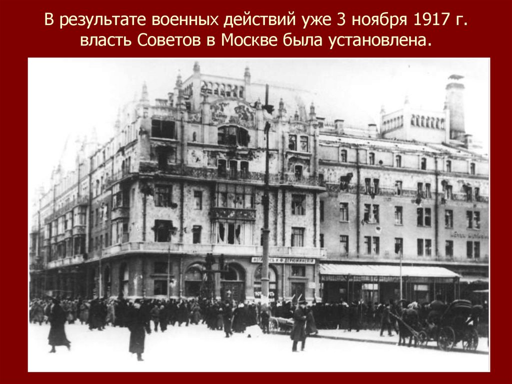 В результате военных действий уже 3 ноября 1917 г.власть Советов в Москве была установлена.