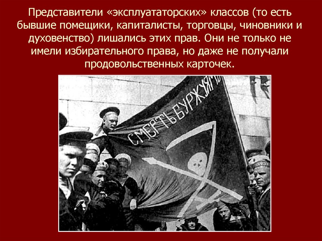 Представители «эксплуататорских» классов (то естьбывшие помещики, капиталисты, торговцы, чиновники и