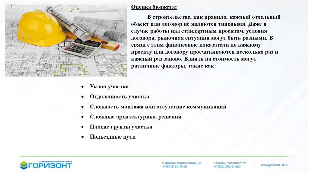 Оценка бюджета:В строительстве, как правило, каждый отдельный