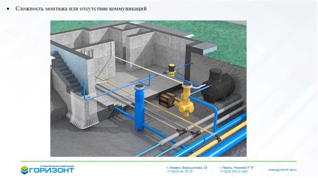 Сложность монтажа или отсутствие коммуникаций