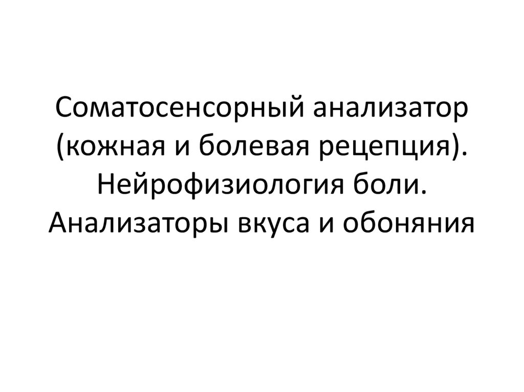 Соматосенсорный анализатор (кожная и болевая рецепция). Нейрофизиология боли. Анализаторы вкуса и обоняния