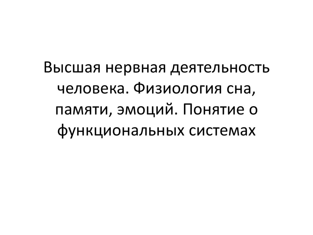 Высшая нервная деятельность человека. Физиологические основы памяти, сна и эмоций. Понятие о функциональных системах