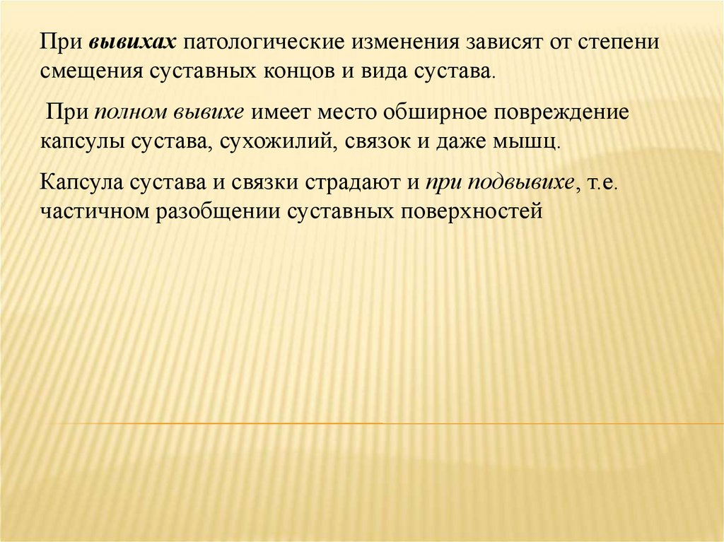 При вывихах патологические изменения зависят от степенисмещения суставных концов и вида сустава.