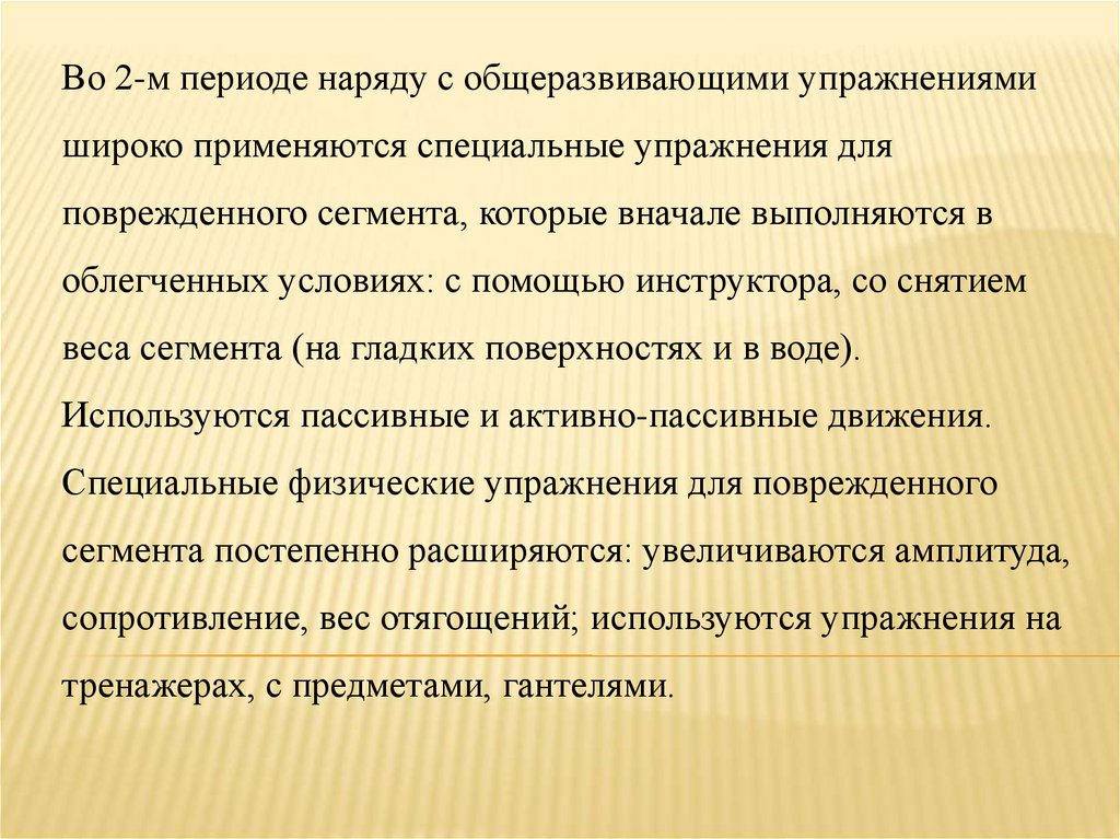 Во 2-м периоде наряду с общеразвивающими упражнениямишироко применяются специальные упражнения для