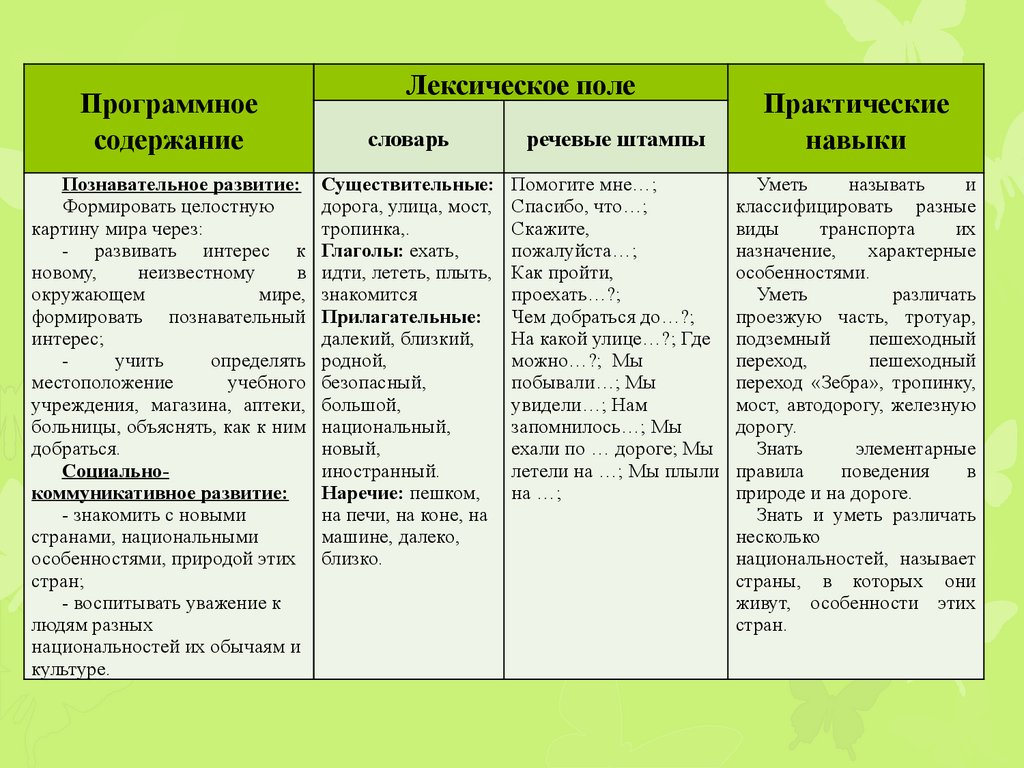 выделение из программы и формулирование педагогической целинедели, задач развития ребенка (детей);