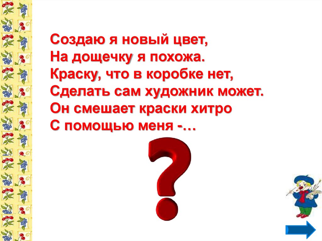 Создаю я новый цвет,На дощечку я похожа.