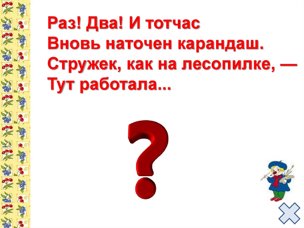 Раз! Два! И тотчасВновь наточен карандаш.