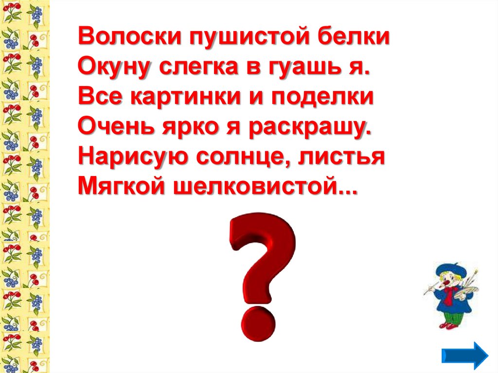 Волоски пушистой белкиОкуну слегка в гуашь я.