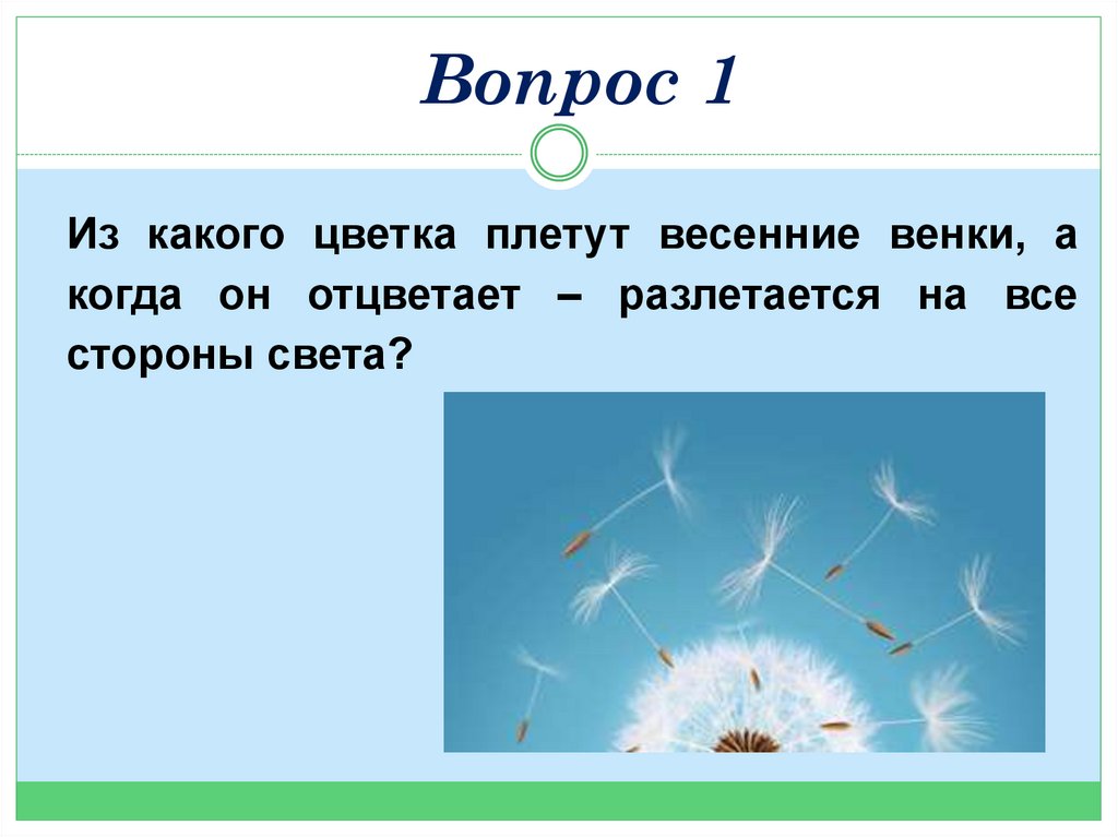 Вопрос 1Из какого цветка плетут весенние венки, а