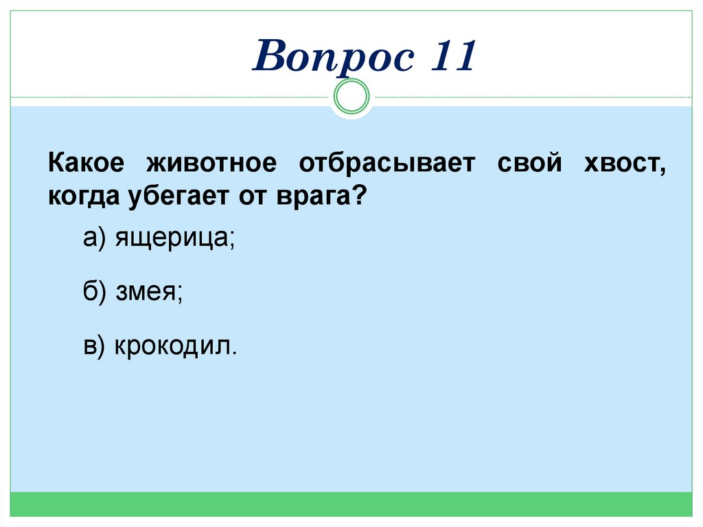 Вопрос 11Какое животное отбрасывает свой хвост,