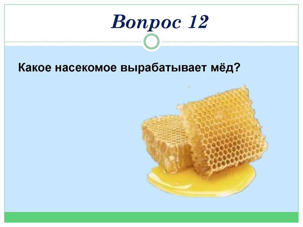 Вопрос 12Какое насекомое вырабатывает мёд?