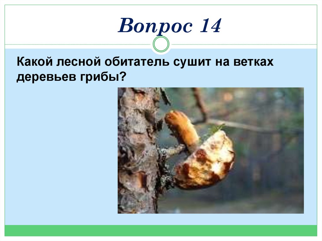 Вопрос 14Какой лесной обитатель сушит на ветках